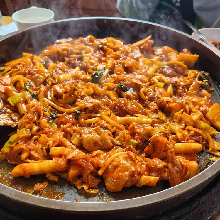 Saat harga ayam lebih murah dari daging babi, masyarakat mulai memasak ayam berbumbu gochujang (pasta cabai) di atas wajan datar besar (teppan).