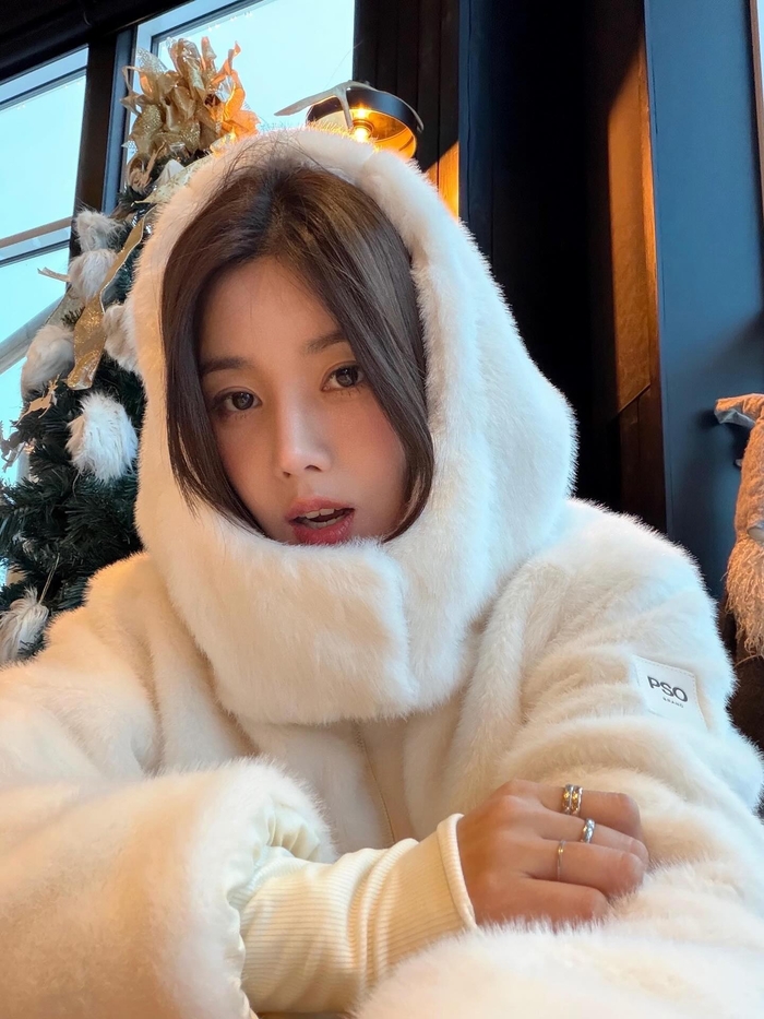 **Eunbi** tampil dengan busana serba putih berbulu yang begitu lembut dan menggemaskan. Seketika, ia memancarkan aura polos dan manis yang tak terbantahkan, seolah ia baru saja melangkah keluar dari buku cerita anak-anak sebagai putri salju yang menawan. Cantiknya alami, ya! ✨