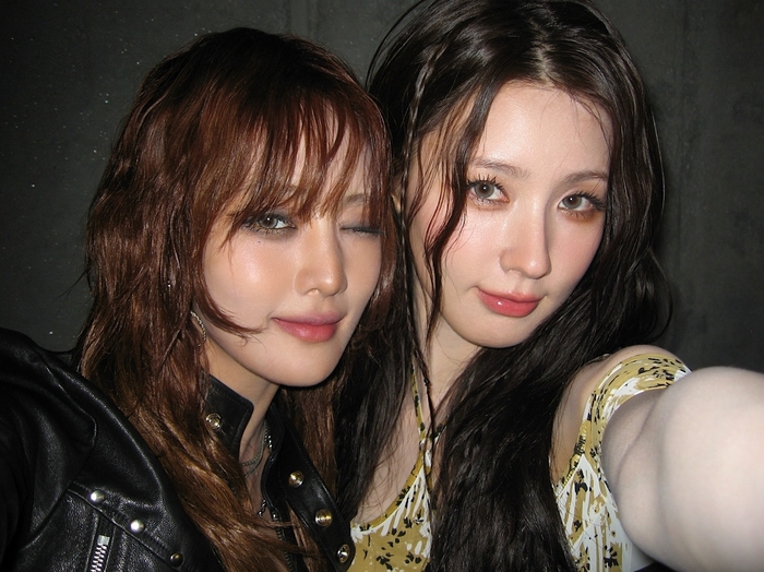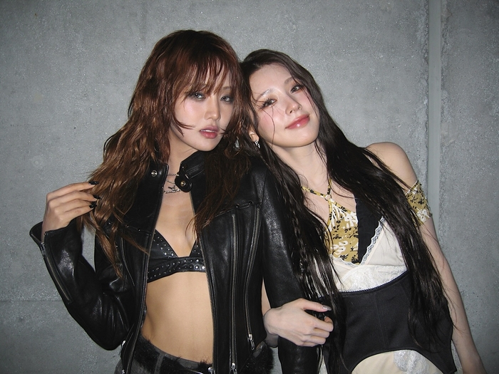 Tidak hanya foto tunggal, Minnie juga membagikan momen kebersamaan dengan rekan satu grupnya, Miyeon. Kedua idola ini menunjukkan chemistry visual yang kuat, berpose akrab dengan wajah berdekatan. Kontras antara karisma intens Minnie dan kecantikan Miyeon yang lebih polos ini, tak ayal, memicu antusiasme besar dari para Neverland (fandom (G)I-DLE).