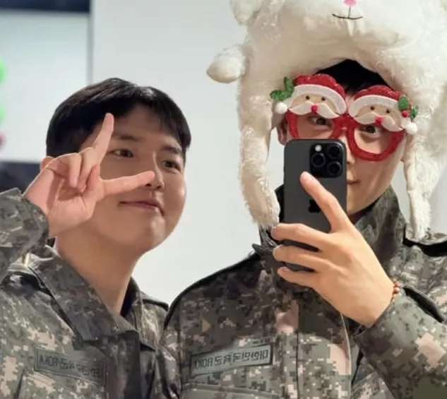 Keduanya terlihat super kompak dalam balutan seragam militer, mengambil mirror selfie yang bikin kita makin kangen. Tapi, ada yang bikin mata kita terfokus banget nih, yaitu penampilan Cha Eunwoo! ✨ Dia tampil beda dari biasanya, pakai kacamata Santa yang lucu banget dan topi domba yang bikin penampilannya makin menggemaskan! Gemoy overload deh pokoknya! 🐑🎅 Visualnya emang enggak pernah gagal bikin hati oleng ya, Kalian! ✨