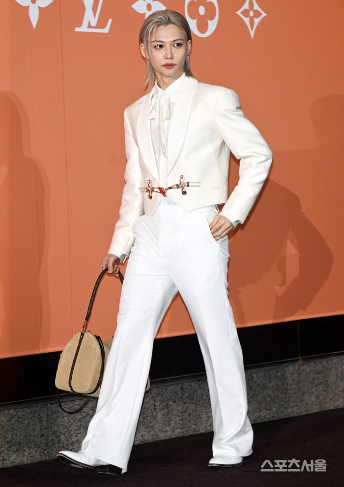 Felix Stray Kids di Balutan Setelan Serba Putih Louis Vuitton: Ikon Global Androgini yang Dicintai! 👀✨