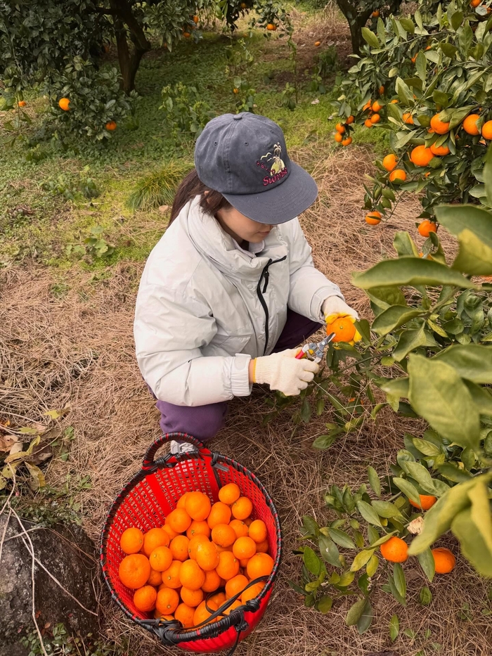 Yang paling menarik perhatian, ada tulisan tangan “수확 권유리” (Dipanen oleh Kwon Yuri) di kotak-kotak jeruk yang ia panen. Ini bukti nyata betapa tulusnya Yuri Eonni dalam menunjukkan cintanya pada penggemar. Ia rela memetik dan mengemas jeruk-jeruk itu sendiri! Plus, ada juga momen manis saat ia jalan-jalan di kebun bersama anjing peliharaannya, menunjukkan kesehariannya yang damai dan menenangkan. So peaceful! 🐶💖