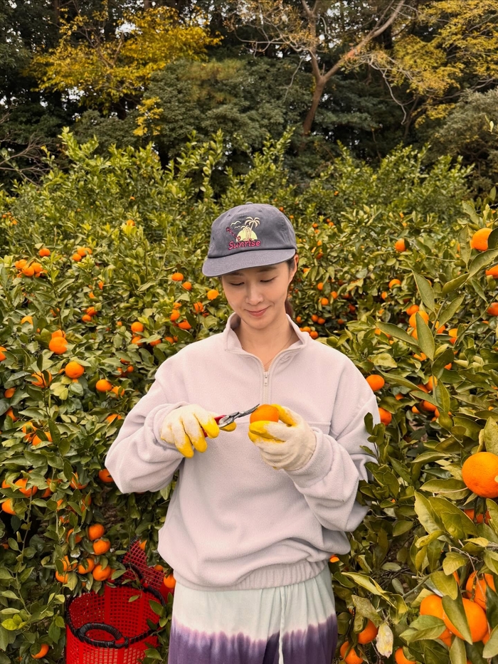 Dari foto-foto yang diunggah, kita bisa lihat Yuri sedang asyik memanen jeruk langsung di kebun jeruk di Pulau Jeju. Penampilannya pun jauh dari kesan glamor seorang idol! Ia terlihat nyaman dengan jaket bulu domba abu-abu dan topi. Meski tanpa riasan tebal, kulitnya yang mulus tanpa noda dan kecantikannya yang alami terpancar jelas. Cantik banget, ya ampun! ✨