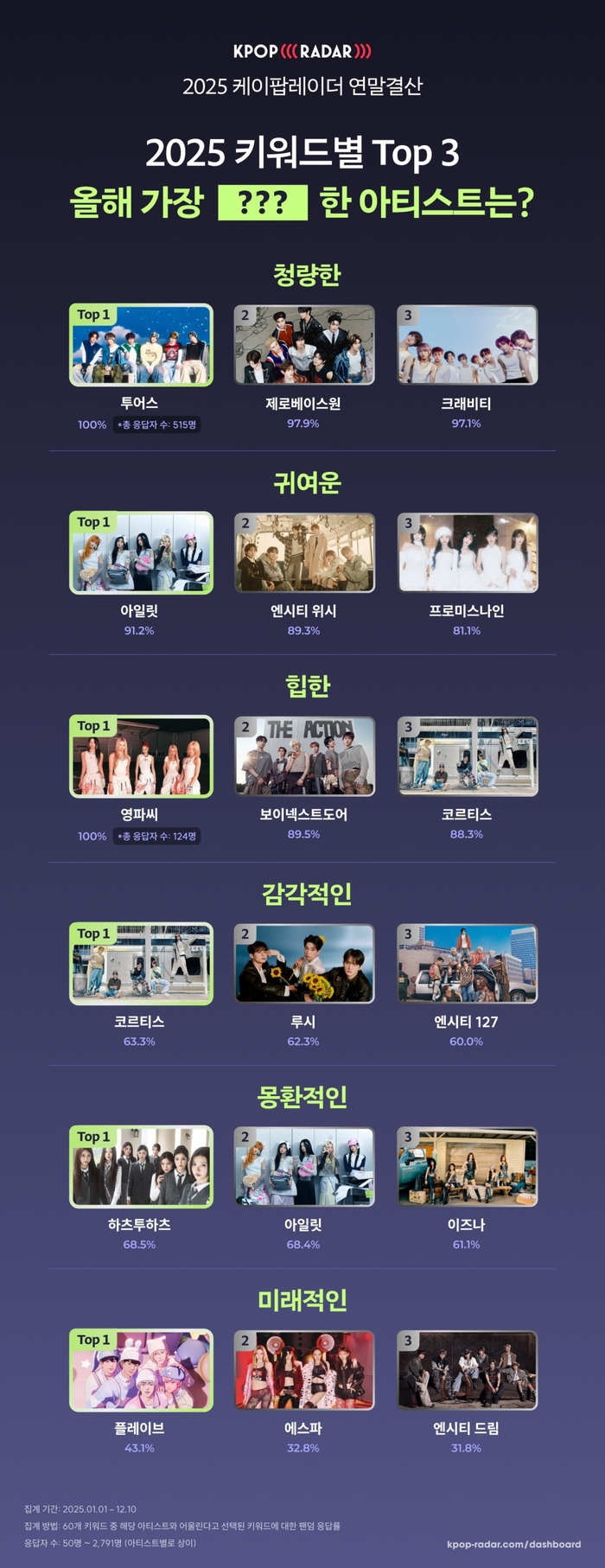 Grup pendatang baru KORTIS mengamankan posisi pertama untuk ‘Most Sensational Artist of the Year.’ Identitas mereka sebagai ‘Young Creator Crew,’ di mana para anggota secara kolektif menciptakan musik, koreografi, dan visual mereka, adalah sebuah terobosan. Model kolaboratif yang digerakkan oleh kreator ini menyuntikkan energi segar ke dalam kancah K-Pop, menunjuk pada masa depan artis yang lebih berdaya.