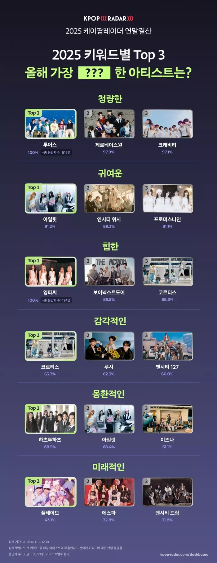 Ini bukan sekadar tentang popularitas; ini adalah tentang strategi branding yang presisi. K-POP RADAR memanfaatkan ‘K-Pop Brand Image Keyword 60’ yang mereka miliki untuk melakukan jajak pendapat penggemar, meminta penggemar global untuk memilih kata kunci yang paling mewakili artis favorit mereka. Data ini, yang dikumpulkan dari 1 Januari hingga 30 November, tidak hanya reflektif; namun juga prediktif, menunjukkan kepada kita arketipe yang paling beresonansi secara mendalam dengan audiens. Implikasinya untuk pengembangan artis dan pemasaran digital sangatlah signifikan.