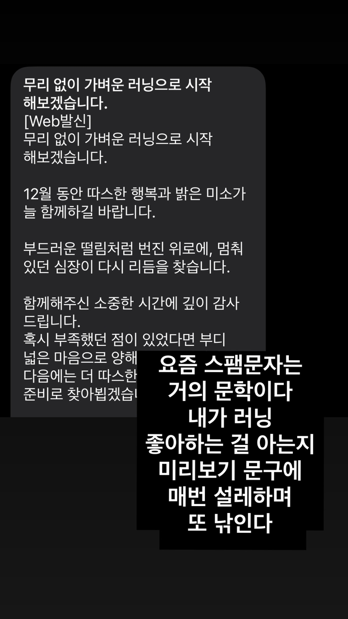 Merespons pesan tersebut, RM menyatakan keheranannya dengan berujar, “Spam zaman sekarang hampir seperti literatur.” Ia kemudian menambahkan, “Saya tidak tahu apakah mereka tahu saya suka lari, tapi saya selalu terpancing dan bersemangat melihat pratinjau pesan ‘lari’ ini, lalu akhirnya tertipu lagi.” Pernyataan ini secara humoris menggambarkan situasinya. Sebagai seseorang yang gemar berolahraga lari, RM tentu membuka pesan tersebut dengan harapan mendapatkan informasi atau undangan terkait aktivitas lari. Namun, ia justru menemukan pesan spam yang dibungkus dengan bahasa yang amat indah.