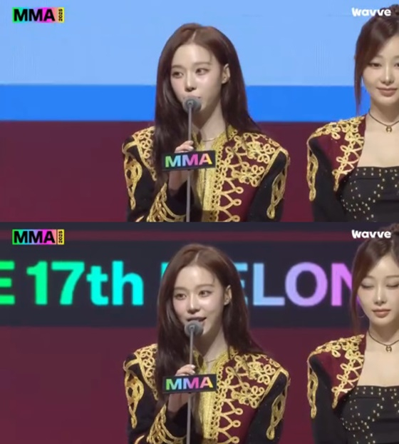 Winter aespa saat memberikan pidato di MMA 2025