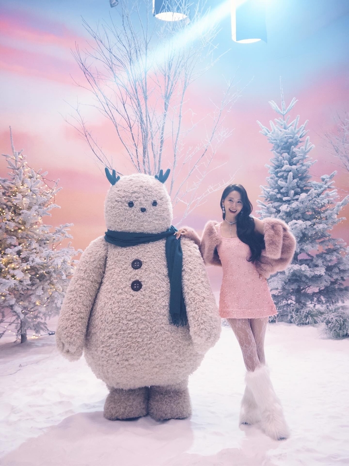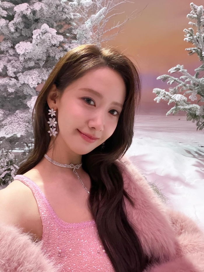 Lihatlah, Sobat! Yoona tampil bak putri dari negeri salju, berdiri anggun di antara pepohonan yang diselimuti salju putih nan lembut. Ia mengenakan gaun mini berpayet pink yang berkilauan, dipadukan dengan bolero bulu tebal yang memberinya kesan hangat namun tetap mewah. Perpaduan ini sungguh menonjolkan pesona unik Yoona yang selalu terlihat menggemaskan sekaligus elegan di saat yang bersamaan. Kami rasa, hanya Yoona yang bisa membuat musim dingin terasa sehangat ini! 🦋